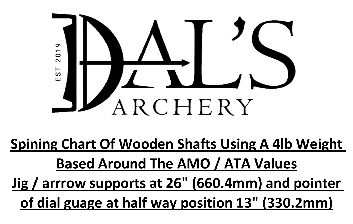 This is a spinging chart for wooden arrows using a 4lb (1.81kg) weight.